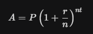 The formula for compound interest is: